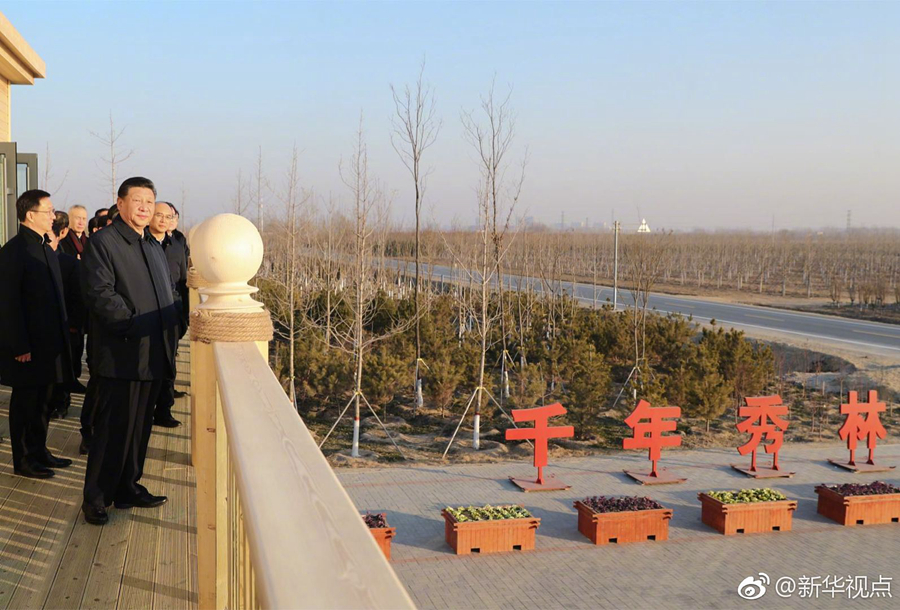 雄安新區(qū)堅(jiān)持生態(tài)優(yōu)先、綠色發(fā)展,率先啟動(dòng)生態(tài)基礎(chǔ)設(shè)施建設(shè)和環(huán)境整治,目前已完成11萬(wàn)畝“千年秀林”建設(shè)。16日下午,習(xí)近平總書記來到“千年秀林”大清河片林一區(qū)造林區(qū)域,乘車穿行林區(qū)察看林木長(zhǎng)勢(shì),登上秀林驛站二層平臺(tái)遠(yuǎn)眺林區(qū)全貌,同當(dāng)?shù)刈o(hù)林員代表親切交流。他說,藍(lán)天、碧水、綠樹,藍(lán)綠交織,將來生活的最高標(biāo)準(zhǔn)就是生態(tài)好。雄安新區(qū)過去有一定的基礎(chǔ),現(xiàn)在搞“千年秀林”,將來這里一定是最宜居的地方。綠水青山就是金山銀山,雄安新區(qū)就要靠這樣的生態(tài)環(huán)境來體現(xiàn)價(jià)值、增加吸引力。(記者張曉松、謝環(huán)馳、鞠鵬)?