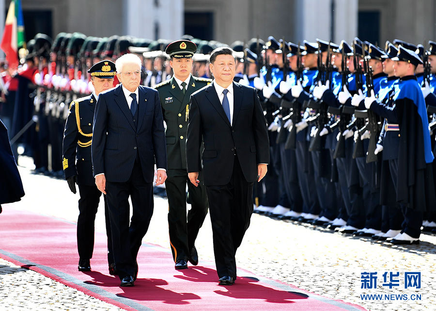 3月22日,國(guó)家主席習(xí)近平在羅馬同意大利總統(tǒng)馬塔雷拉舉行會(huì)談。會(huì)談前,馬塔雷拉總統(tǒng)為習(xí)近平舉行隆重歡迎儀式。 新華社記者 謝環(huán)馳 攝