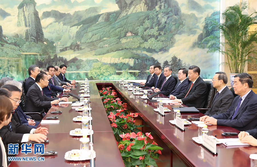 習(xí)近平指出,當(dāng)前,中日關(guān)系重回正常軌道,呈現(xiàn)積極發(fā)展勢(shì)頭。雙方要恪守中日四個(gè)政治文件確立的各項(xiàng)原則,堅(jiān)持和平友好大方向,持續(xù)深化互利合作,推動(dòng)兩國(guó)關(guān)系健康穩(wěn)定發(fā)展。要把中日“互不構(gòu)成威脅”、“互為合作伙伴,相互支持對(duì)方和平發(fā)展”的政治共識(shí)落到實(shí)處,把兩國(guó)各領(lǐng)域交流合作推向新水平。雙方要深挖合作潛力。中方歡迎日方繼續(xù)深入?yún)⑴c中國(guó)改革開(kāi)放,希望日方更加積極參與共建“一帶一路”。雙方要加強(qiáng)溝通和協(xié)調(diào),共同維護(hù)多邊主義和自由貿(mào)易,共同推動(dòng)建設(shè)開(kāi)放型世界經(jīng)濟(jì)。中方支持日方辦好二十國(guó)集團(tuán)領(lǐng)導(dǎo)人大阪峰會(huì)。今年是中日青少年交流促進(jìn)年,雙方要在兩國(guó)民間特別是青少年當(dāng)中廣泛播撒友好種子,推進(jìn)民心相通。
