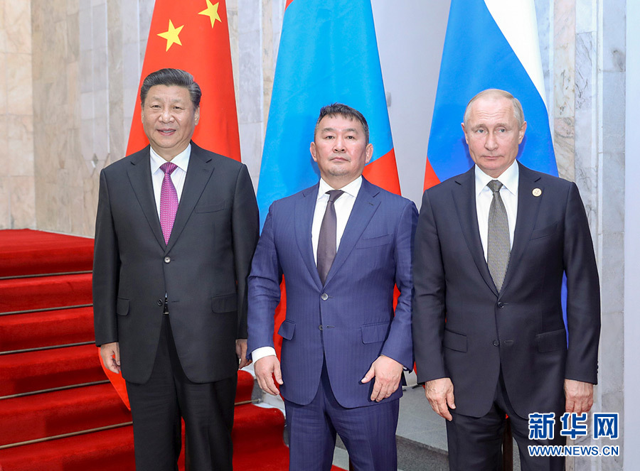 習(xí)近平指出,今年中方將分別同俄蒙兩方慶祝建交70周年,中俄蒙三方合作將迎來新的機(jī)遇。在當(dāng)前國際上保護(hù)主義、單邊主義抬頭背景下,三方要堅(jiān)定促進(jìn)區(qū)域合作、實(shí)現(xiàn)共同發(fā)展的目標(biāo),圍繞三國發(fā)展戰(zhàn)略對接這條主線,推進(jìn)各領(lǐng)域全面合作,共同釋放三國維護(hù)多邊主義、打造開放型世界經(jīng)濟(jì)的積極信號。