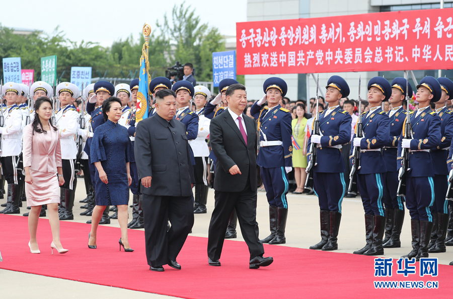 6月21日,中共中央總書記、國家主席習近平結(jié)束對朝鮮的國事訪問離開平壤回國。離開前,習近平和夫人彭麗媛出席朝鮮勞動黨委員長、國務(wù)委員會委員長金正恩和夫人李雪主在機場舉行的歡送儀式。新華社記者 黃敬文 攝