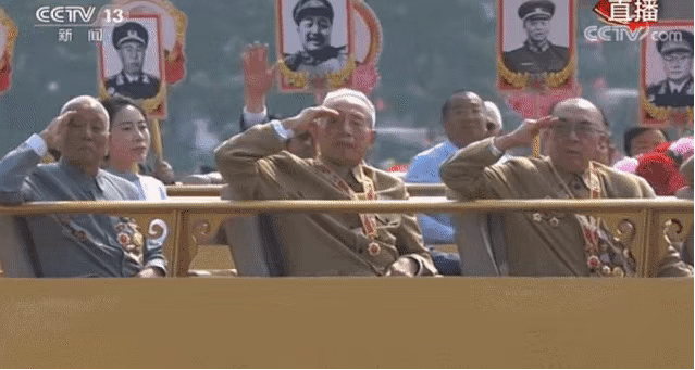 ?一曲《紅旗頌》奏響,當(dāng)“致敬方陣”的禮賓車上,老一輩黨和國家、軍隊(duì)領(lǐng)導(dǎo)人親屬代表,老一輩建設(shè)者和親屬代表,新中國成立前參加革命工作的老戰(zhàn)士,老一輩軍隊(duì)退役英模、民兵英模和支前模范代表等從天安門前經(jīng)過時(shí),全場所有人自發(fā)起立,向英雄們致以崇高的敬意。 ?