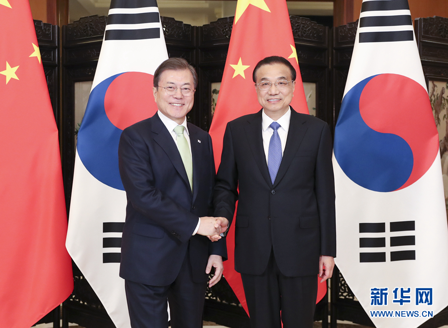 12月23日,國務(wù)院總理李克強在四川成都會見出席第八次中日韓領(lǐng)導(dǎo)人會議的韓國總統(tǒng)文在寅。新華社記者 丁海濤 攝