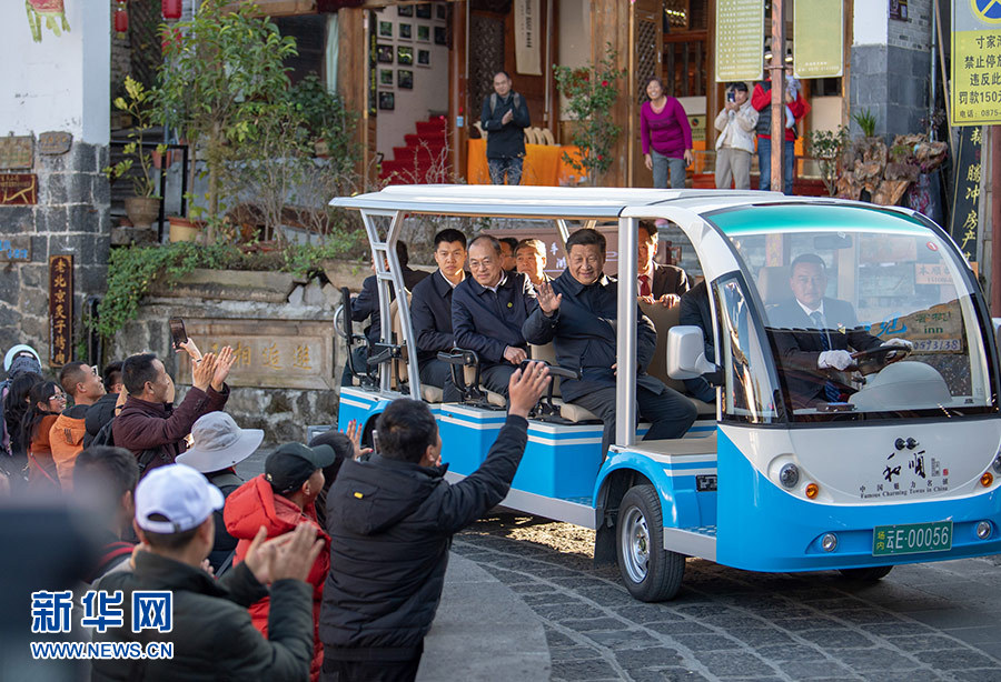 1月19日下午,正在云南考察的中共中央總書(shū)記、國(guó)家主席、中央軍委主席習(xí)近平來(lái)到和順古鎮(zhèn),了解絲綢古道交往、歷史文化傳承和生態(tài)環(huán)境保護(hù)等情況。 新華社記者 謝環(huán)馳 攝