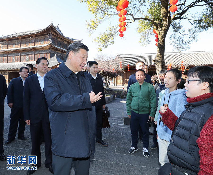 1月19日下午,正在云南考察的中共中央總書記、國家主席、中央軍委主席習(xí)近平來到和順古鎮(zhèn),了解絲綢古道交往、歷史文化傳承和生態(tài)環(huán)境保護(hù)等情況。 新華社記者 謝環(huán)馳 攝