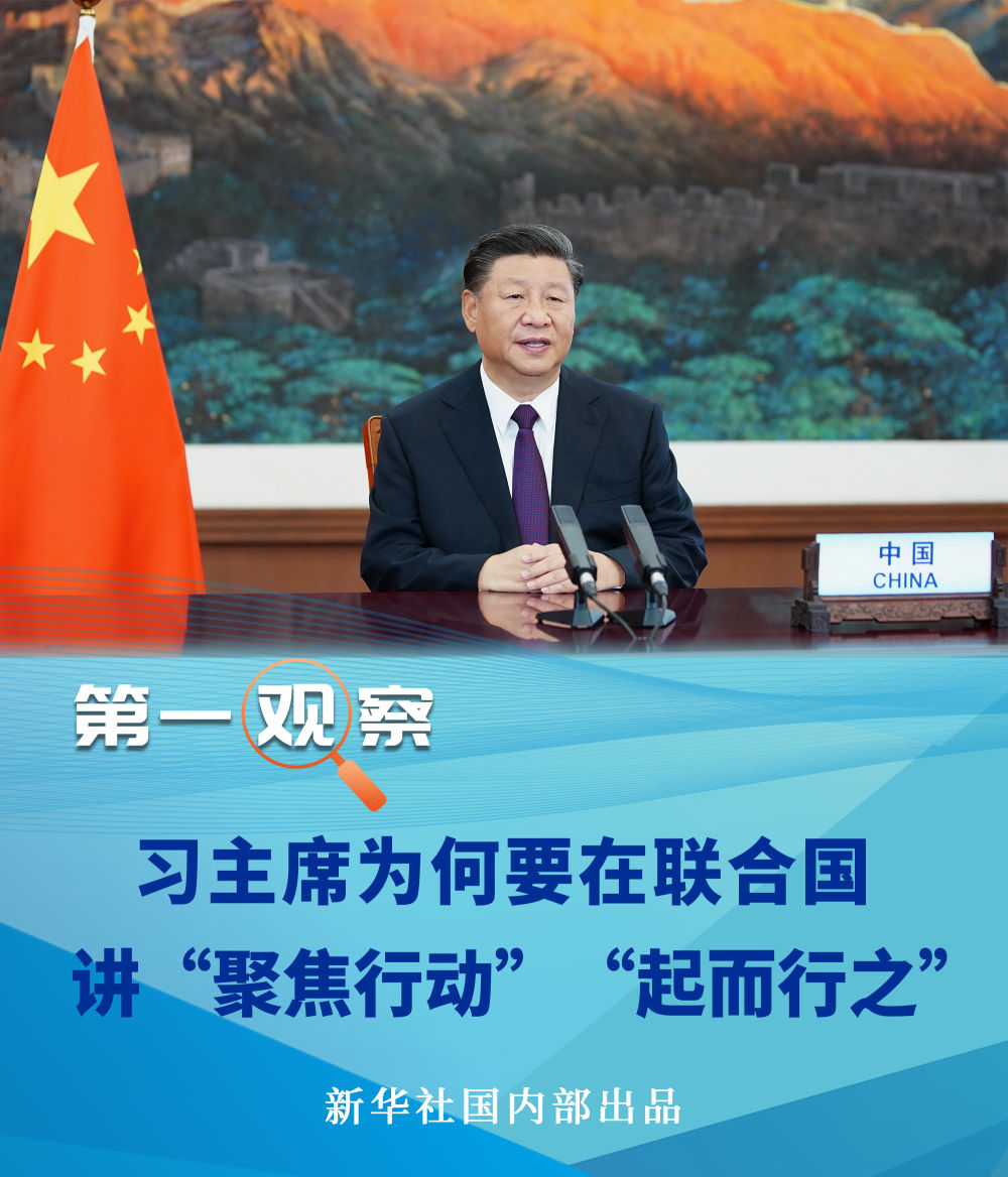21日,在聯(lián)合國成立75周年紀(jì)念峰會上,習(xí)近平主席就聯(lián)合國如何發(fā)揮作用提出四點建議,其中點出“聚焦行動”這一關(guān)鍵詞,強(qiáng)調(diào)“不能只開藥方,不見療效”。