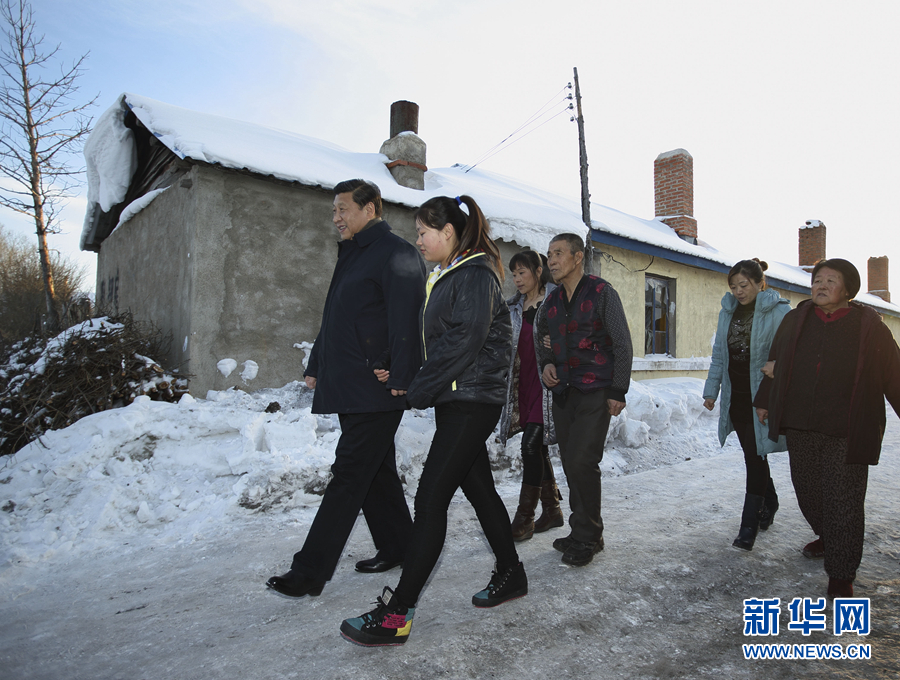 2012年12月30日,習近平在河北省阜平縣龍泉關鎮(zhèn)駱駝灣村看望慰問困難群眾。 新華社記者 蘭紅光 攝