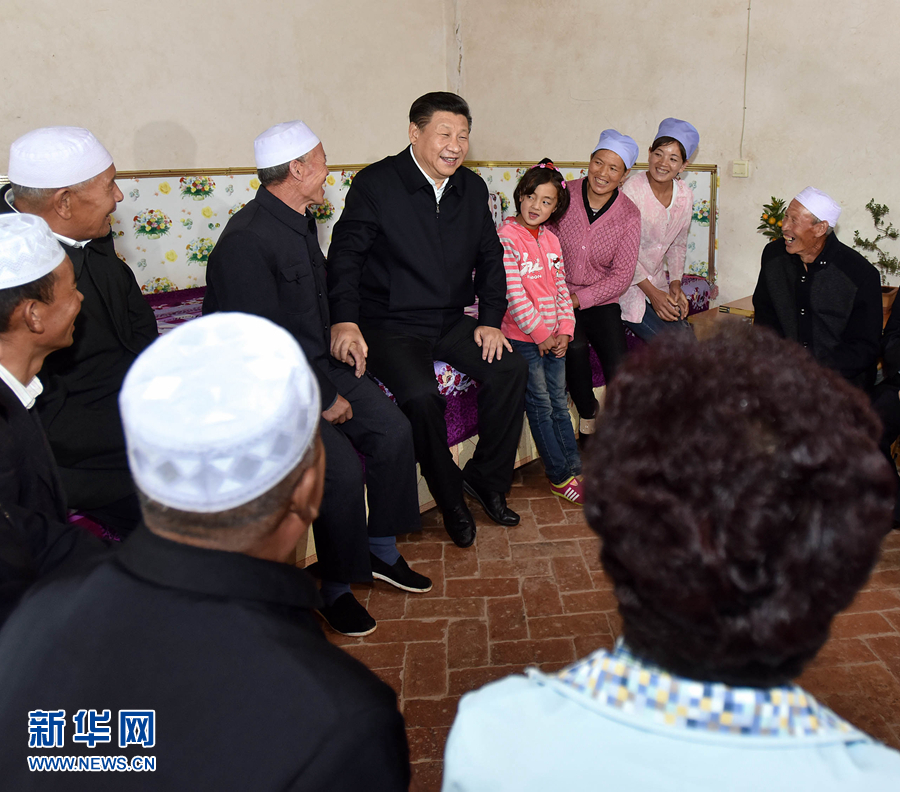 2016年7月18日下午,習近平在寧夏固原市涇源縣大灣鄉(xiāng)楊嶺村村民馬克俊家同一家人和村民代表親切交談。 新華社記者 李濤 攝