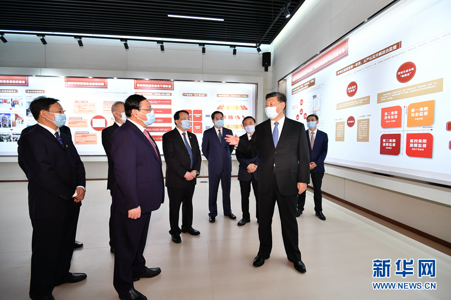 慶祝大會后,總書記來到浦東展覽館,參觀“在國家戰(zhàn)略的引領(lǐng)下——浦東開發(fā)開放30周年主題展”。