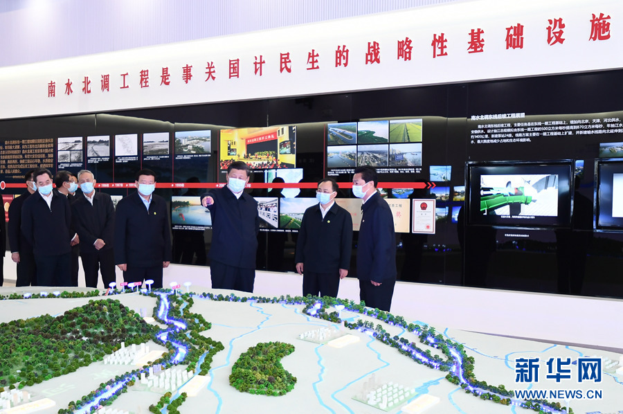 一個(gè)大型沙盤模型直觀地呈現(xiàn)了中國大地上水資源大范圍大規(guī)模跨區(qū)域調(diào)配的壯闊景象,習(xí)近平總書記駐足凝望——