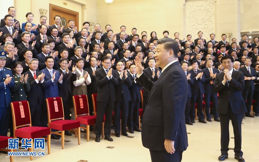 上午10時(shí),習(xí)近平等來到京西賓館會議樓前廳,全場響起熱烈掌聲。習(xí)近平等走到代表們中間,同大家親切交流并合影留念。