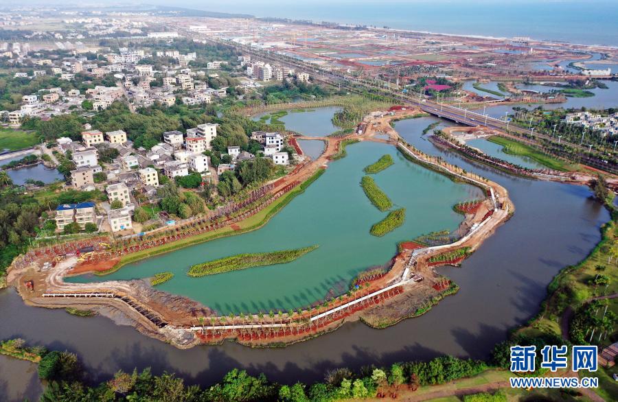 這是海口市江東新區(qū)芙蓉河綜合治理工程(11月6日攝,無(wú)人機(jī)照片)。新華社記者 郭程 攝