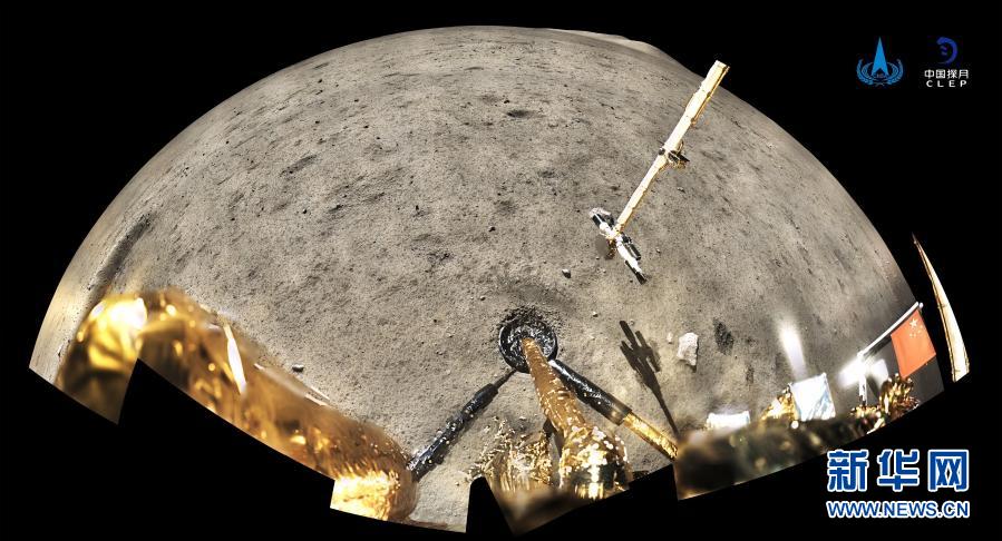 12月4日,國(guó)家航天局公布了探月工程嫦娥五號(hào)探測(cè)器在月球表面國(guó)旗展示的照片。嫦娥五號(hào)著陸器和上升器組合體全景相機(jī)環(huán)拍成像,五星紅旗在月面成功展開,此外圖像上方可見(jiàn)已完成表取采樣的機(jī)械臂及采樣器。新華社發(fā)(國(guó)家航天局供圖)