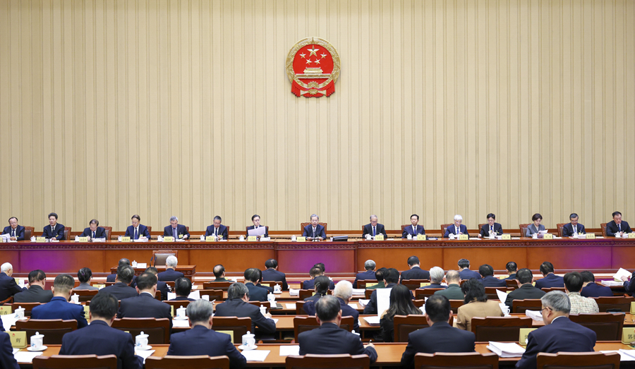 10月24日上午,十四届全国人大常委会第十八次会议在北京人民大会堂举行第一次全体会议。赵乐际委员长主持。新华社记者 岳月伟 摄