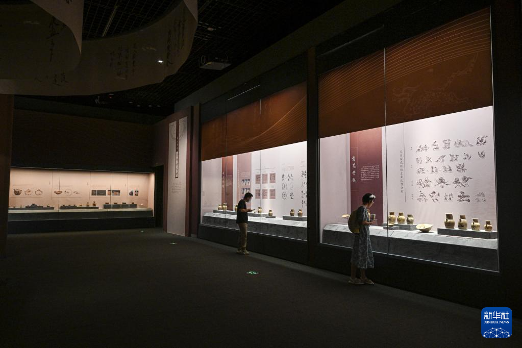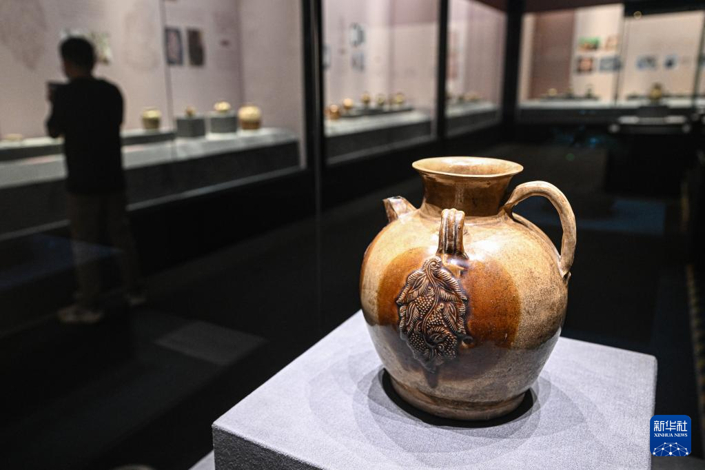 这是5月18日在中国(海南)南海博物馆拍摄的“诗画彩瓷——唐代海上丝绸之路上的长沙窑瓷器展”。