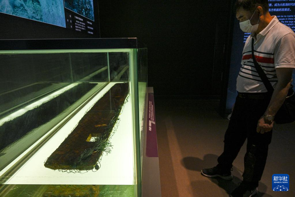 5月18日,观众在中国(海南)南海博物馆观看“西沙华光礁Ⅰ号沉船特展”。