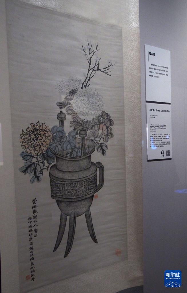 7月6日在上海博物馆展厅拍摄的《杞菊延年图轴》,系清代赵之谦、程守谦合作而成。