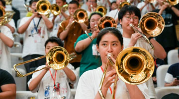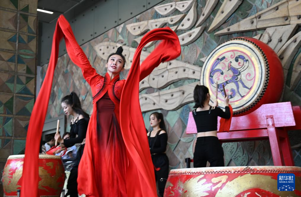 8月5日,市民在艺术课堂上学习非洲鼓演奏。