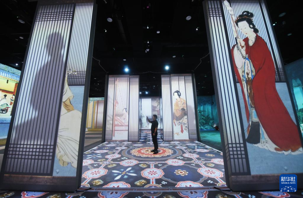 8月29日,参观者在浙江省博物馆新馆的数字化展厅里观展。