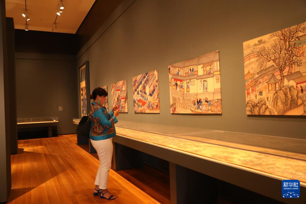 9月6日,在美国俄亥俄州克利夫兰艺术博物馆,一名男子参观“人间天堂:中国江南珍宝展”。新华社记者施春摄