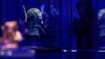 10月25日,观众在秦始皇帝陵博物院观看“问蜀——东周时期的蜀文化特展”。