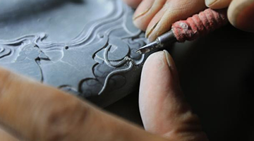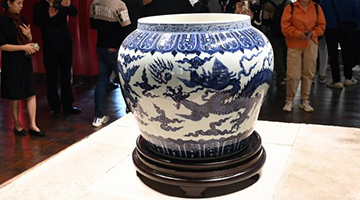 10月25日,观众在秦始皇帝陵博物院观看成都博物馆馆藏文物狩猎纹铜壶。