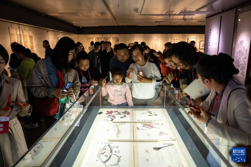 11月5日,在湘潭市博物馆,观众在观看齐白石作品。
