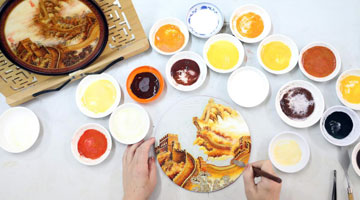 春节刚过,位于辽宁省凤城市凤凰山脚下的凤城景泰蓝珀晶画工作室内,55岁的锡伯族非遗传承人刘晶涛和她的徒弟们正忙着制作各式景泰蓝珀晶画。