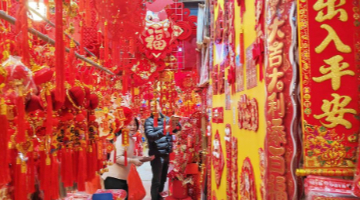 1月9日,消费者在淄博市博山区西冶工坊展销厅内挑选蛇年主题琉璃工艺品。