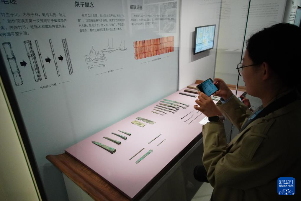 这是在山东博物馆展出的春秋时期书刻工具(4月25日摄)。