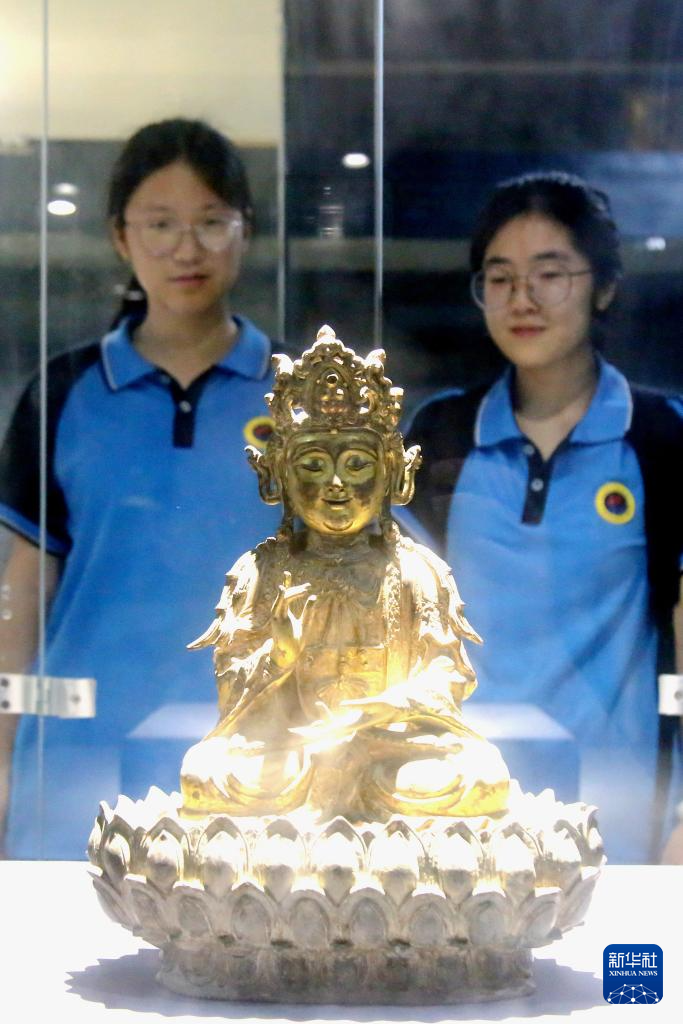 5月18日,游客在河北省石家庄市正定博物馆参观。