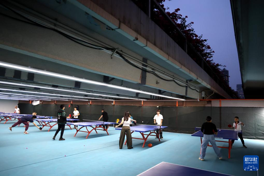 11月3日,市民在位于广州市二沙岛的广州大桥桥底乒乓球场打球。