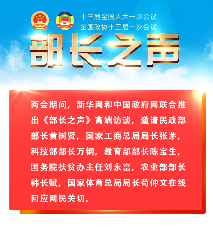 兩會(huì)期間,民政部部長(zhǎng)黃樹(shù)賢做客新華網(wǎng)、中國(guó)政府網(wǎng)《部長(zhǎng)之聲》,回應(yīng)網(wǎng)民關(guān)切。