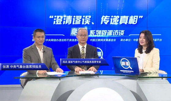 中央網(wǎng)信辦違法和不良信息舉報中心、中國互聯(lián)網(wǎng)發(fā)展基金會、中國互聯(lián)網(wǎng)聯(lián)合辟謠平臺正式推出“澄清謬誤、傳遞真相”系列辟謠訪談。第一期,我們邀請到中央氣象臺首席預(yù)報員張濤、國家氣候中心氣候服務(wù)首席專家周兵,為您解讀天氣、氣候等方面的話題。