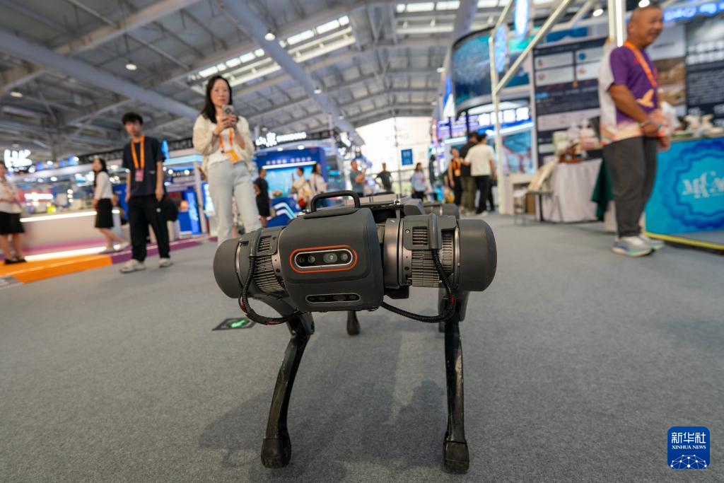 这是9月11日在电信、计算机和信息服务专题展区拍摄的机器人马拉松比赛获奖机器人。