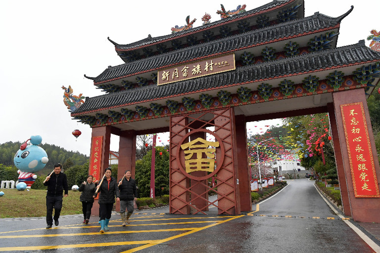 穿過江西省資溪縣烏石鎮(zhèn)新月畬族村牌樓,青山綠樹環(huán)抱村莊,白墻褐瓦的畬寨整齊排列,不時有炊煙飄出。位于閩贛交界處的新月村,過去曾是武夷山區(qū)閉塞落后的“茅棚村”,如今已成為遠(yuǎn)近聞名的小康村。