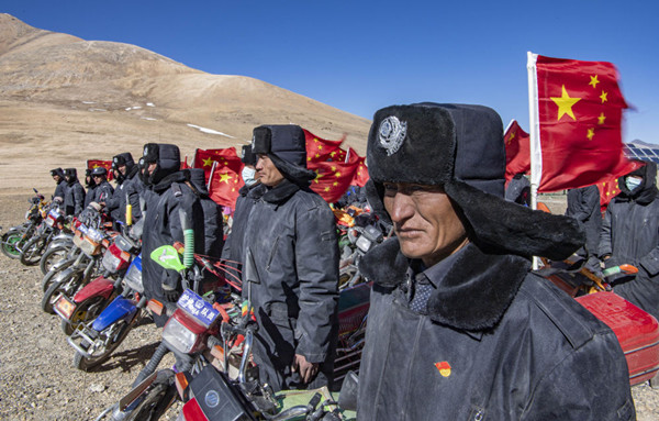 “從小看著長(zhǎng)輩們巡邏,聽他們?cè)谀翀?chǎng)上為我們宣講黨的政策,特別受教育。”旦增石塔說(shuō),作為年輕人,要將傳統(tǒng)傳下去,把幸福守下去。
