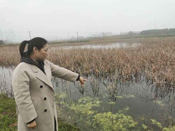 ↑在大房郢水庫邊,鳳陽小崗村水源地環(huán)??萍加邢薰矩?fù)責(zé)人宋進(jìn)介紹種植的沉水植物。新華社記者 姜?jiǎng)?攝
