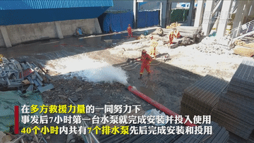 應(yīng)急、消防、電力、衛(wèi)健等多部門人員正緊張有序開展工作。在多方救援力量的一同努力下,事發(fā)后7小時(shí),第一臺(tái)水泵就完成安裝并投入使用。40個(gè)小時(shí)內(nèi),發(fā)生事故煤礦共有7個(gè)排水泵先后完成安裝和投用。