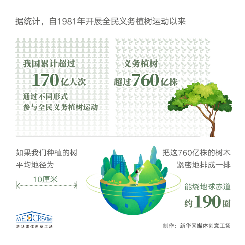 1981年,第五屆全國(guó)人民代表大會(huì)第四次會(huì)議通過(guò)《關(guān)于開(kāi)展全民義務(wù)植樹運(yùn)動(dòng)的決議》。至此,植樹造林、綠化祖國(guó)成為中國(guó)每一位適齡公民的法定義務(wù),一代代中華兒女熱情參與到綠化祖國(guó)的浪潮中,義務(wù)植樹運(yùn)動(dòng)從此在神州大地蓬勃開(kāi)展起來(lái)。每到植樹時(shí)節(jié),從城市到鄉(xiāng)村、從機(jī)關(guān)到工廠、從部隊(duì)到學(xué)校、從內(nèi)地到邊疆,全國(guó)各族人民揮鍬揚(yáng)鋤,造林綠化的浪潮一浪高過(guò)一浪。