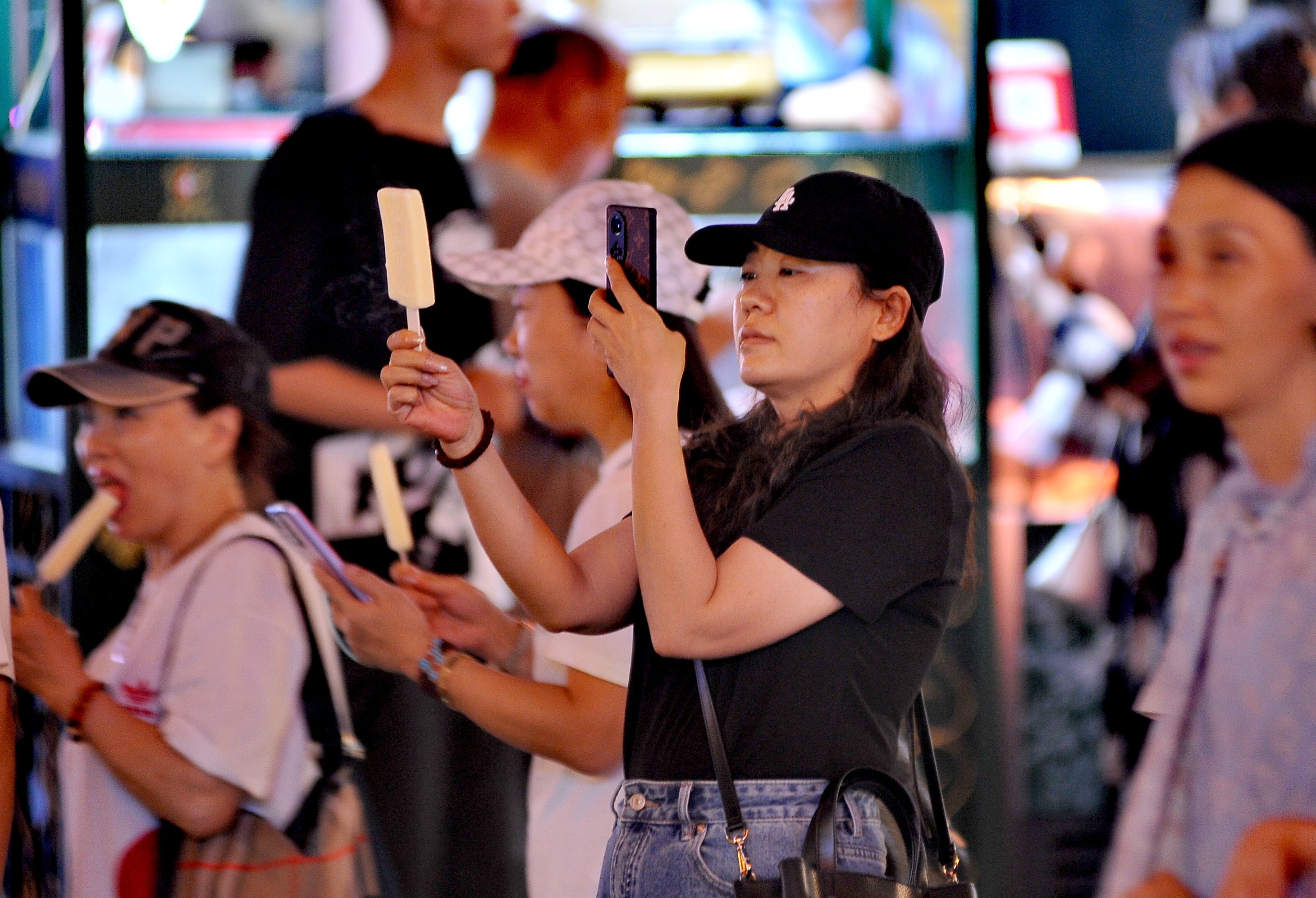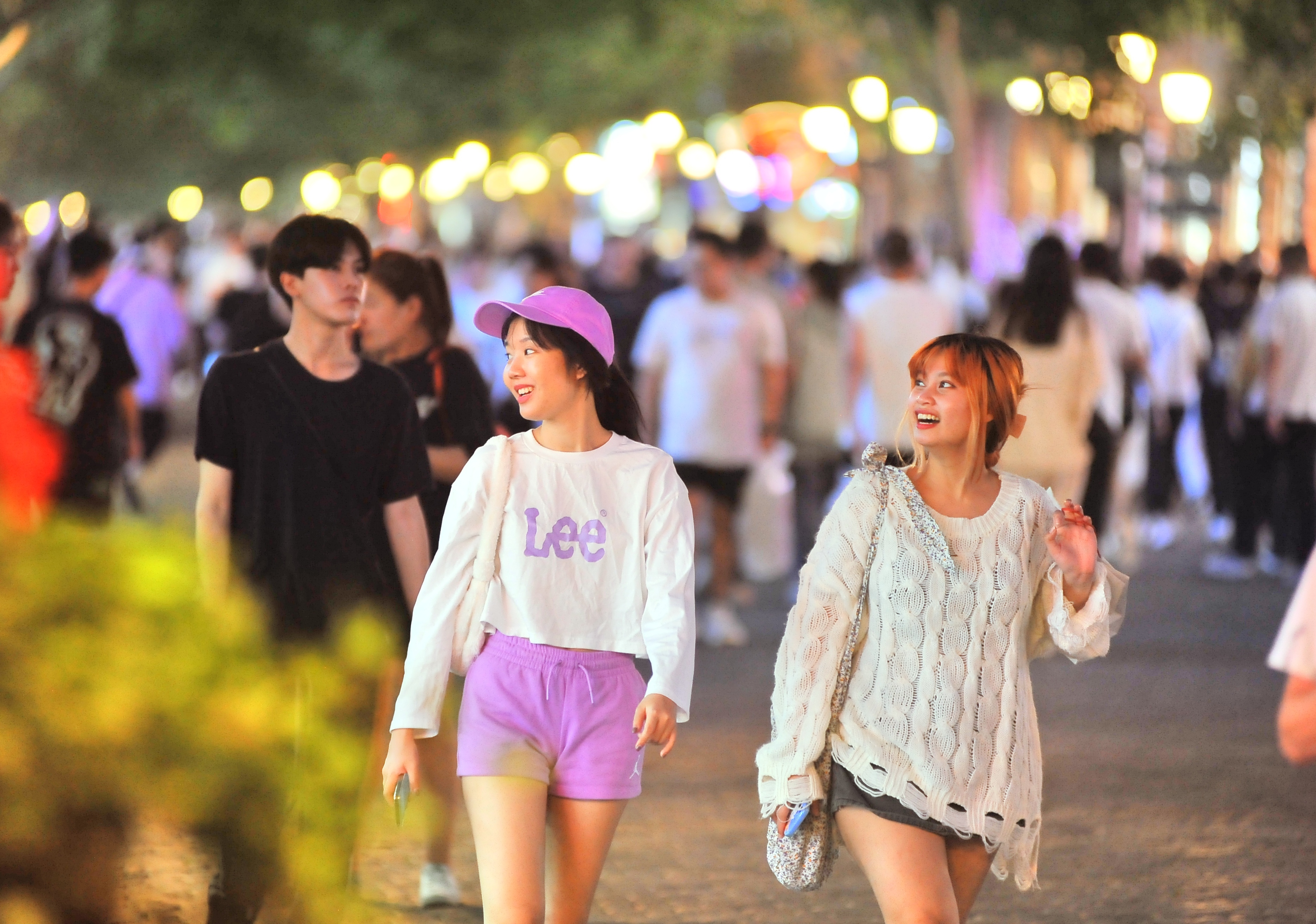夜晚,許多市民和外地游客來到中央大街逛街,享受夏日里的清涼。