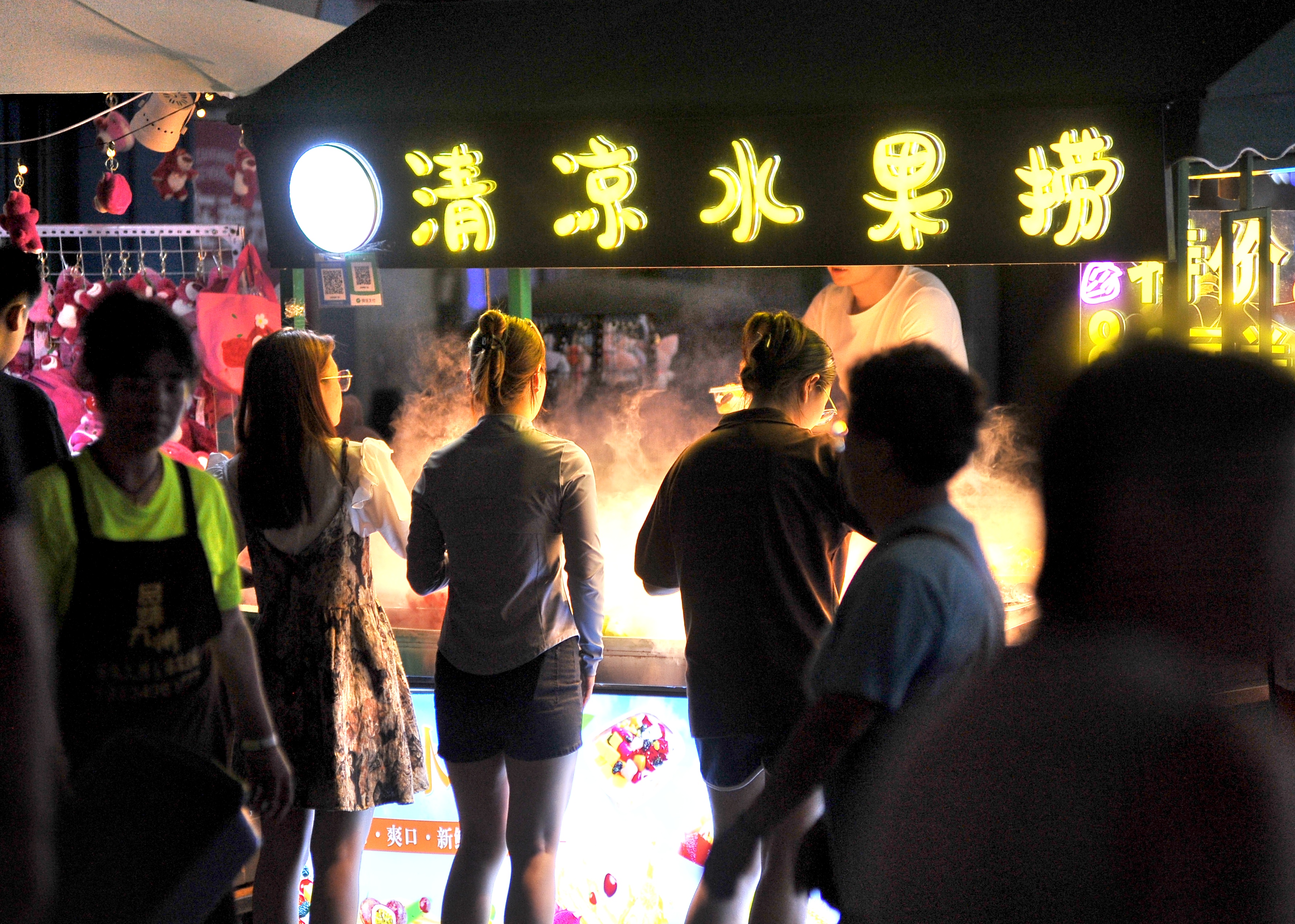 百年老街上人來人往,非常熱鬧,這里匯聚了全國(guó)各地的美食,烤紅腸、烤魷魚等香氣四溢,竹筒冰淇淋、清涼水果撈等美味可口。