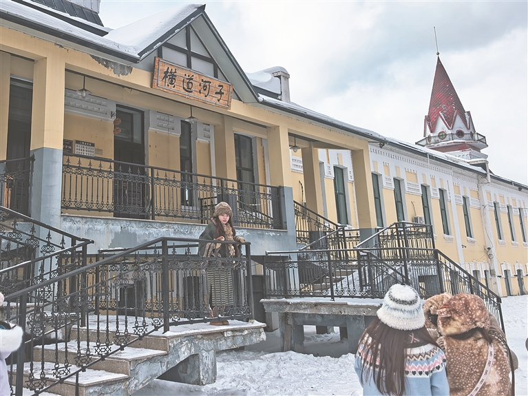 東北虎林園里游客正在圍觀東北虎野化訓(xùn)練、百年老街在冰雪的裝飾下宛如夢(mèng)幻仙境、中東鐵路機(jī)車庫在陽光的照耀下訴說著當(dāng)年的故事……11月首輪降雪后,橫道河子率先開啟了今年的冰雪季,心急的游客早早就來到了這里?!拔胰ツ昃驮诰W(wǎng)上看到橫道河子了,今年一到冬天立刻就來了。從來沒見過這么大的雪,很美很好玩?!眮碜詮V西南寧的蒙玉霞說,橫道河子不僅景色美,人也很熱情,一會(huì)兒還要去拍一套冰雪公主的寫真留作紀(jì)念。