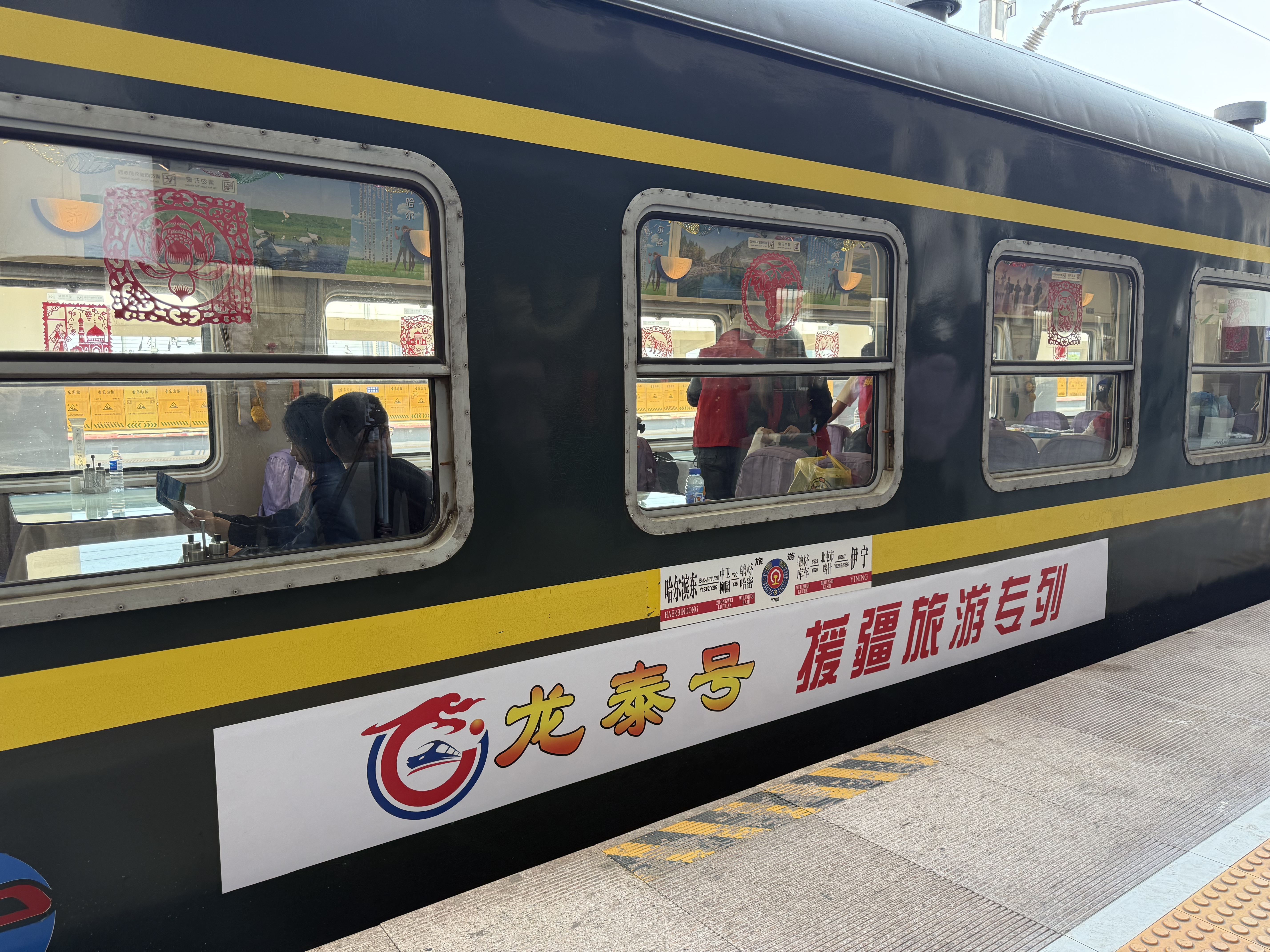 5月21日13時12分,在黑龍江哈爾濱東站,680余名游客踏上開往新疆方向Y64次“龍?zhí)┨枴痹y發(fā)旅游專列,駛向新疆阿勒泰地區(qū)。這是今年中國鐵路哈爾濱局集團有限公司(以下簡稱哈爾濱局集團公司)開行的首趟“龍?zhí)┨枴痹y發(fā)旅游專列。