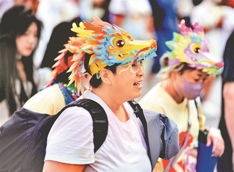 5月30日晚,端午前夜,市民、游客從四面八方匯聚到哈爾濱市中央大街,奔向松花江畔踏青、游玩。