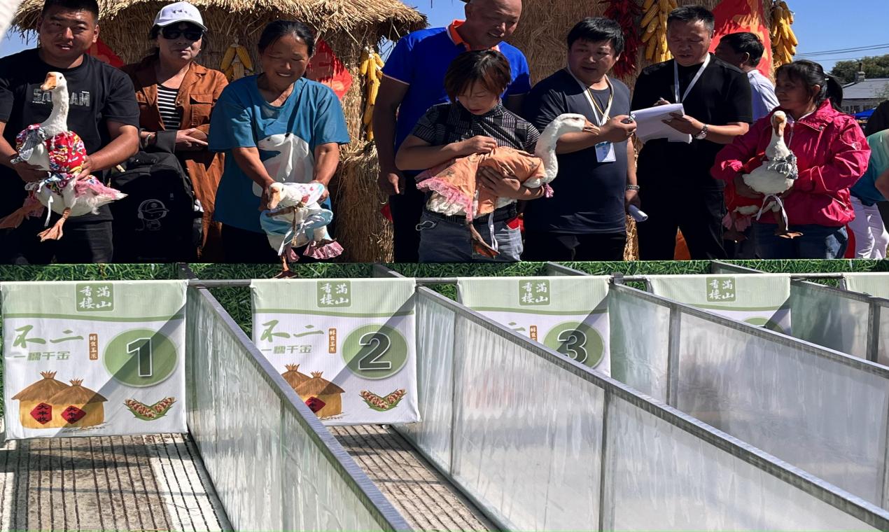 孟家崗鎮(zhèn)“豐收節(jié)”農(nóng)民趣味運(yùn)動(dòng)會(huì)上,農(nóng)民在進(jìn)行大鵝比賽(圖片由佳木斯市委宣傳部提供)