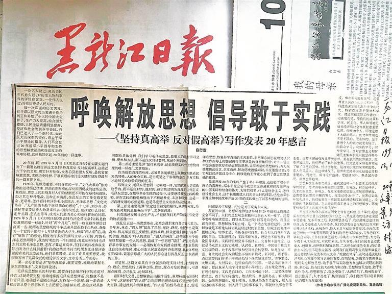1978年9月11日《黑龍江日報》在1版頭題發(fā)表了我以“白曦”署名的評論文章《堅持真高舉 反對假高舉》,我撰寫的初稿,由賈士祥、魏正一編輯,發(fā)表后立即引起很大反響,受到省委好評,成為我省表明政治立場和態(tài)度,堅持實事求是、解放思想的一篇重要文章。由于我素來重視理論學(xué)習,這篇近7000字的文章幾乎是一氣呵成。