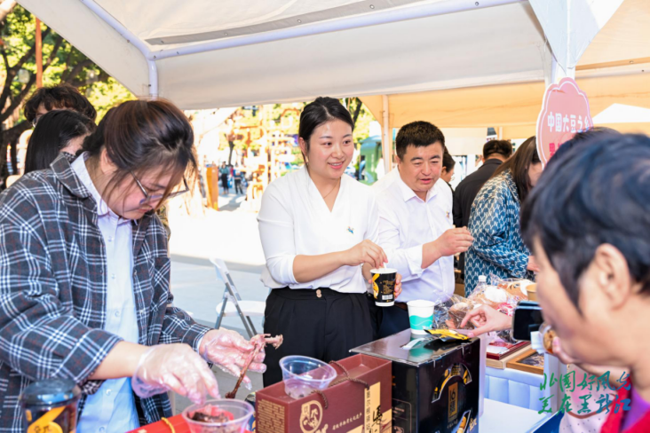 黑河展位前,工作人員為廣州市民準(zhǔn)備一些試吃的美食