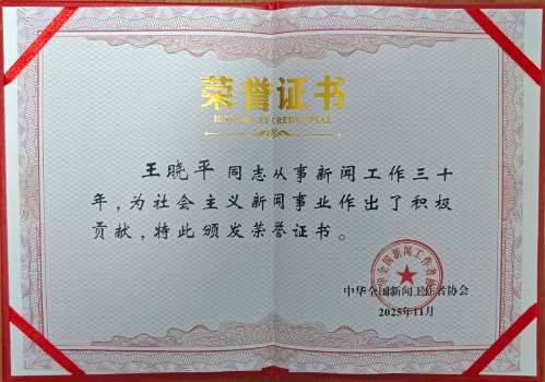 作者獲得從事新聞工作三十年榮譽(yù)證書