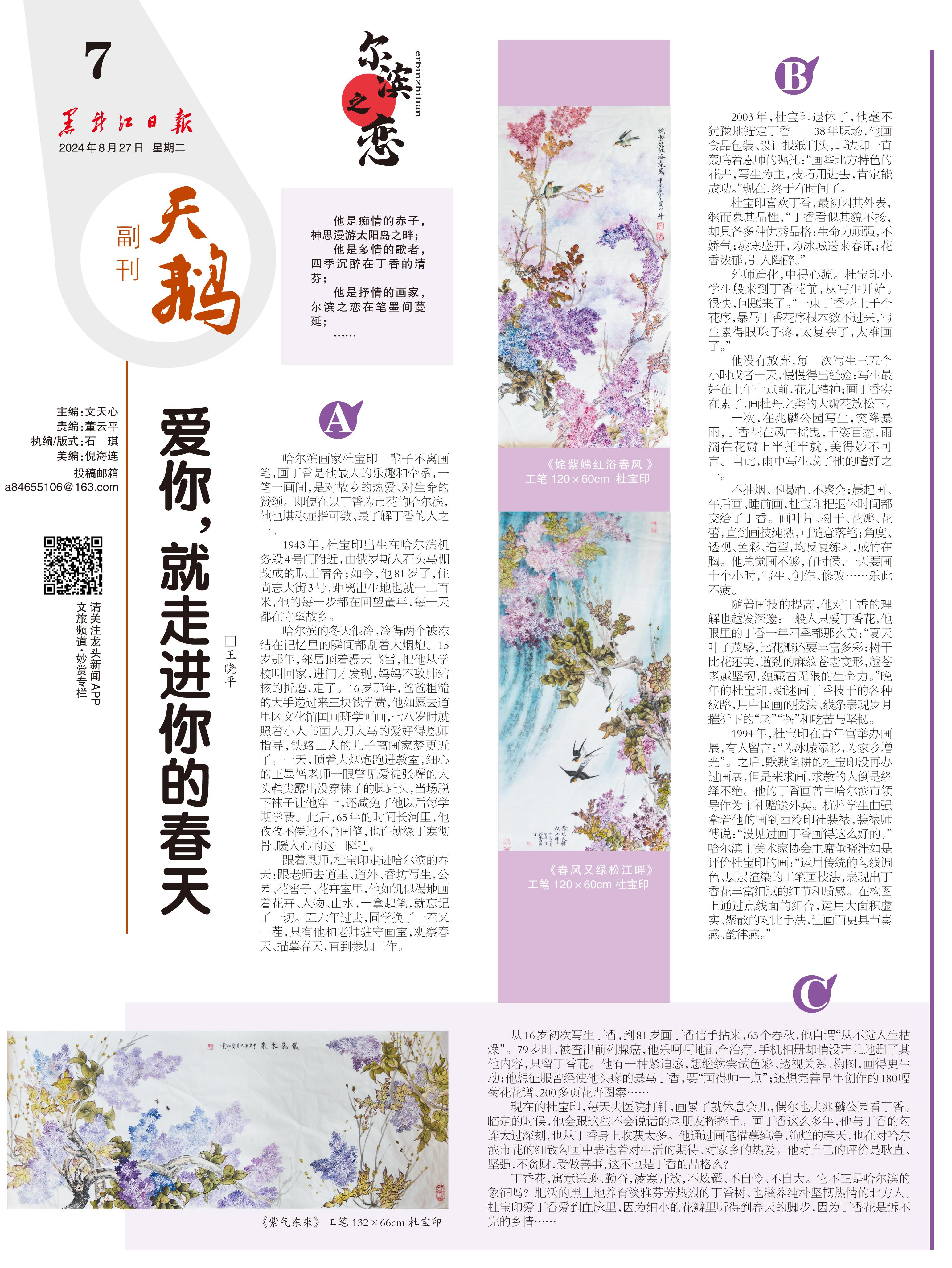 地段街1號,門前“為人民服務(wù)”與“黑龍江日報(bào)報(bào)業(yè)集團(tuán)”的大字歷經(jīng)寒暑而愈發(fā)醒目;地段街2號,筆尖樓的尖頂矗立春秋仍挺拔如初。它們見證的那些溫暖的人和事,伴我前行、成長。